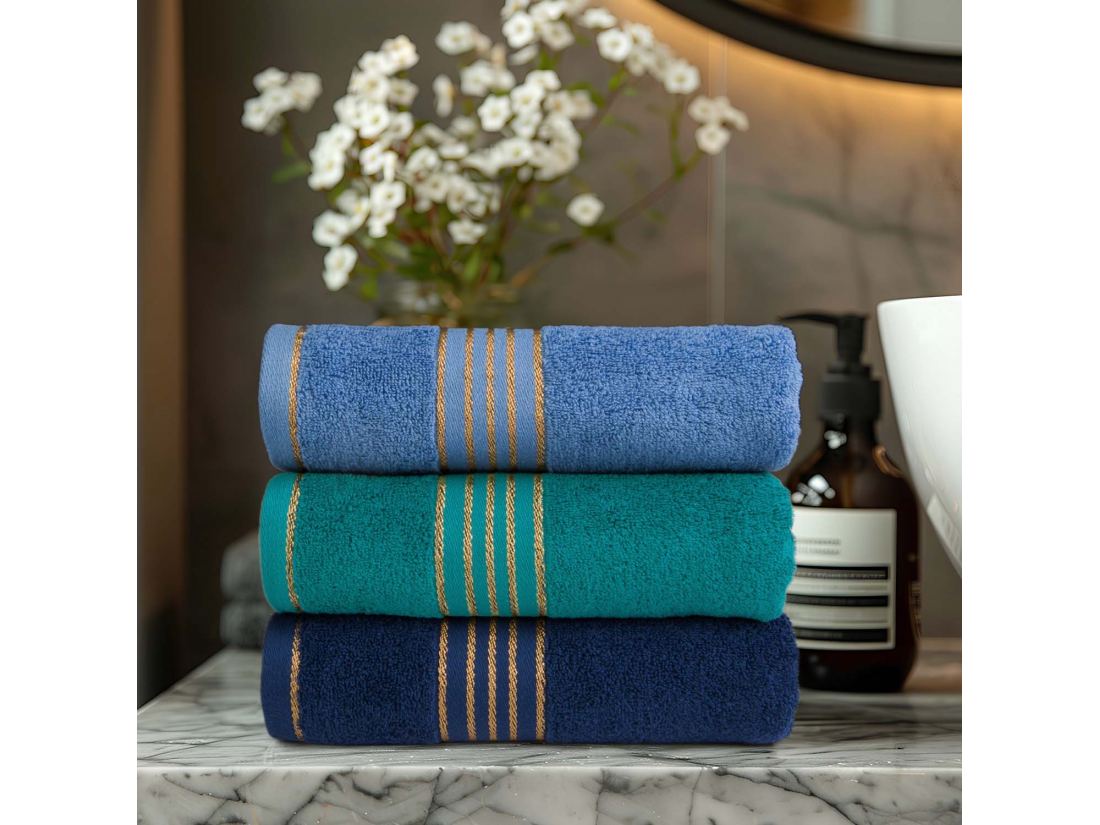 Ręcznik 70x140 kąpielowy bawełniany Tiwano ciemny turkus ze złotą bordiur - subtelność i styl każdego dnia