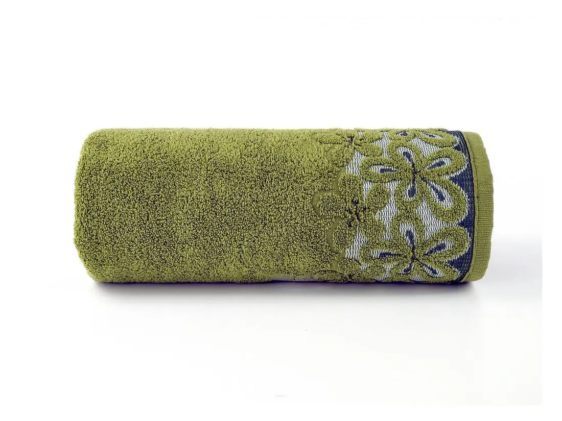 Ręcznik Bella w rozmiarze 30x50 cm w kolorze oliwkowym firmy Greno, to delikatny ręcznik z botique collection. Gruby, mięsisty jednobarwny ręcznik z delikatną alpikacją kwiatową wykonany z wysokogatunkowej bawełny.