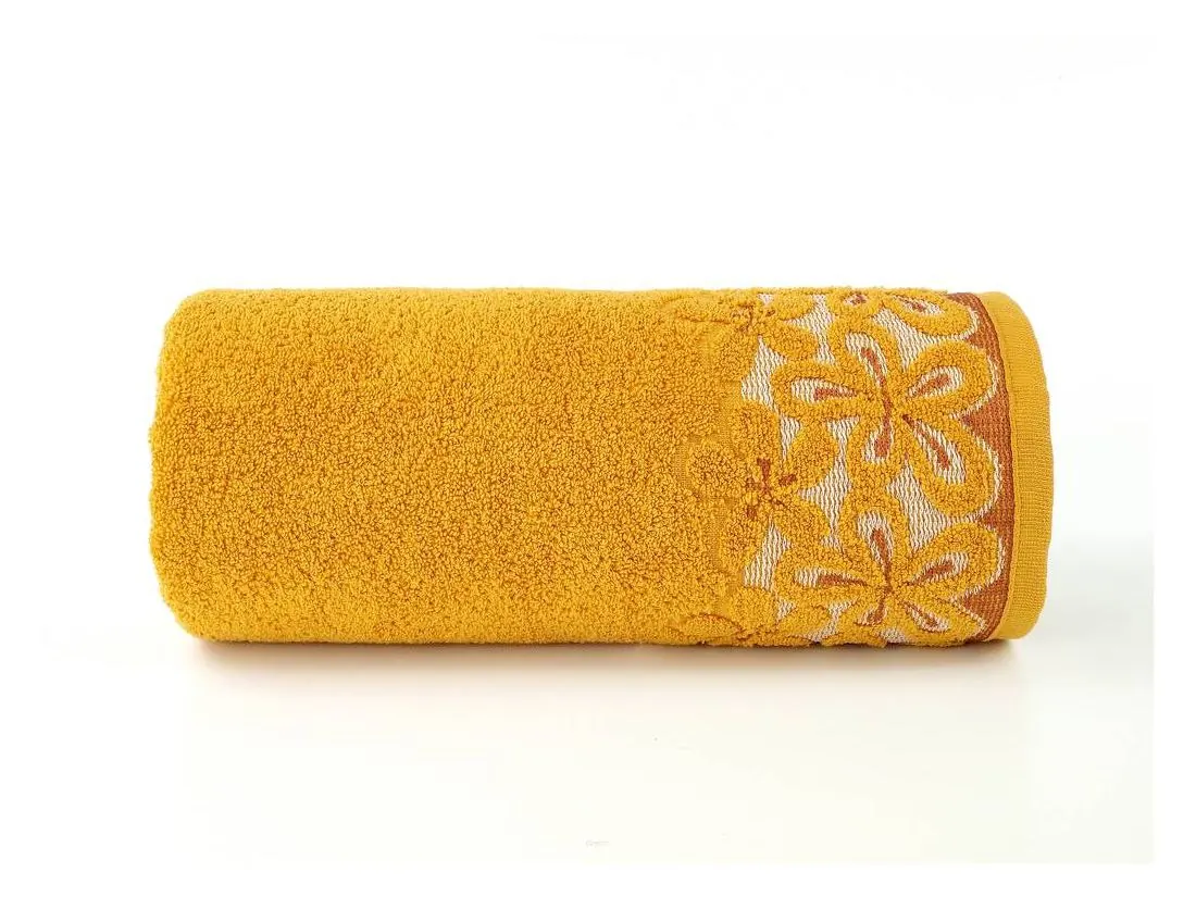 Ręcznik Bella w rozmiarze 50x90 cm w kolorze kurkuma firmy Greno, to delikatny ręcznik z botique collection. Gruby, mięsisty jednobarwny ręcznik z delikatną alpikacją kwiatową wykonany z wysokogatunkowej bawełny.