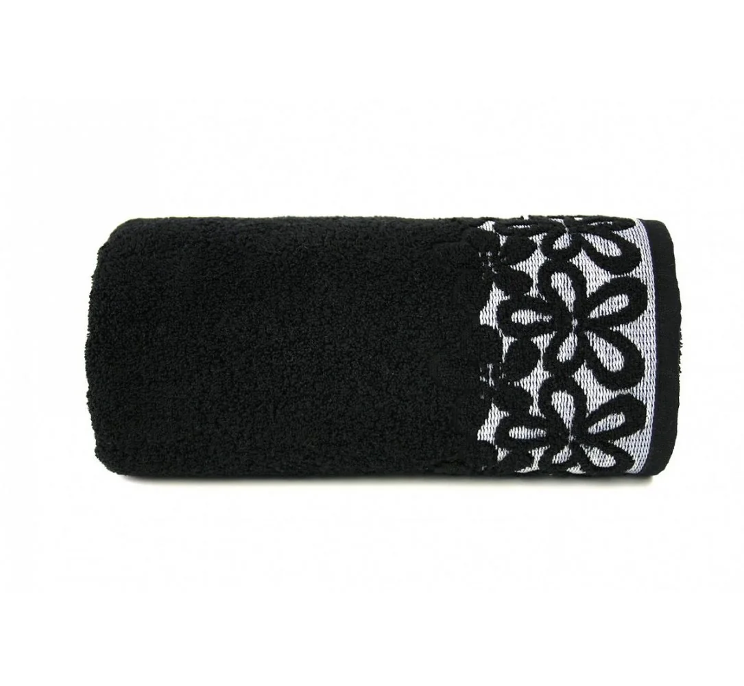 Ręcznik Bella w rozmiarze 70 x 140 cm w kolorze czarnym firmy Greno, to delikatny ręcznik z botique collection. Gruby, mięsisty jednobarwny ręcznik z delikatną alpikacją kwiatową wykonany z wysokogatunkowej bawełny.