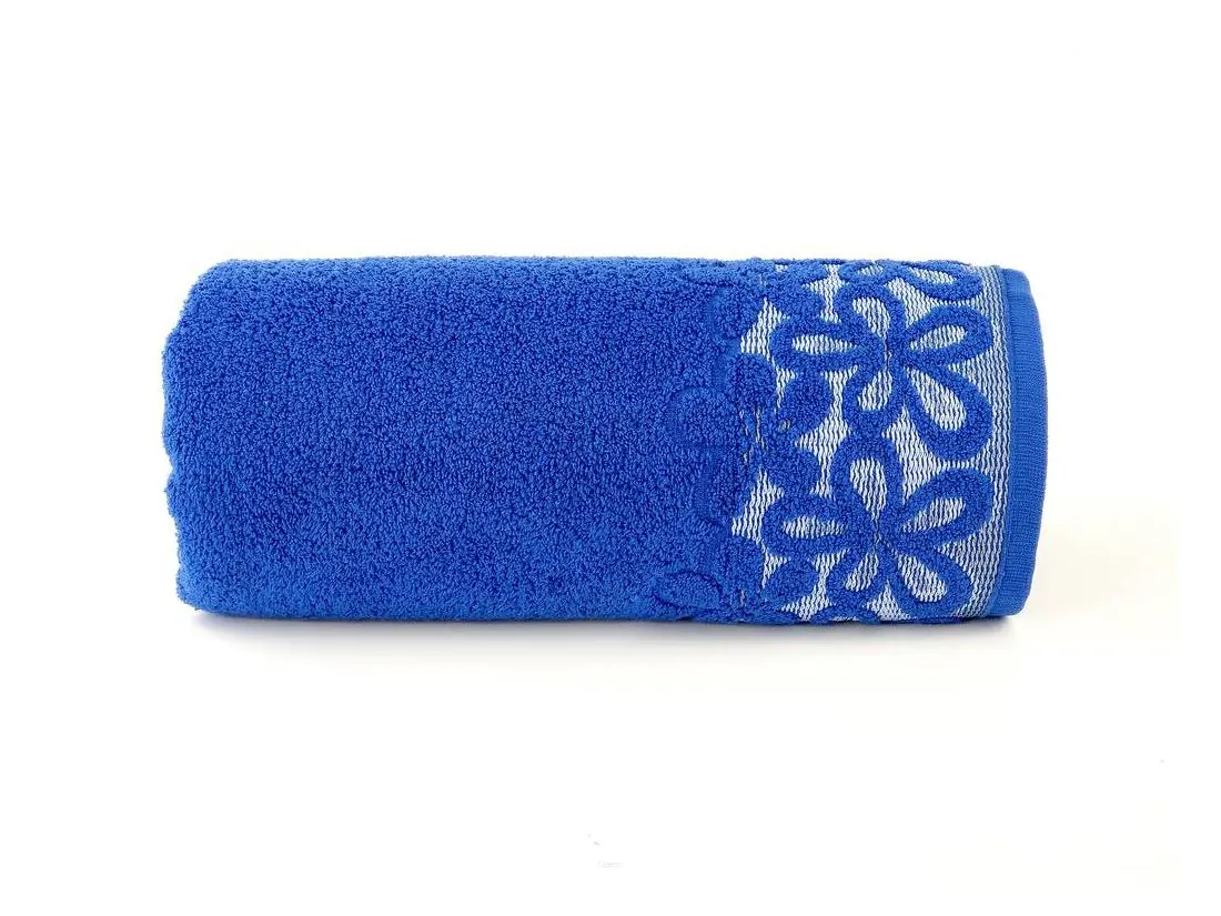Ręcznik Bella w rozmiarze 70x140 cm w kolorze chabrowym firmy Greno, to delikatny ręcznik z botique collection. Gruby, mięsisty jednobarwny ręcznik z delikatną alpikacją kwiatową wykonany z wysokogatunkowej bawełny.