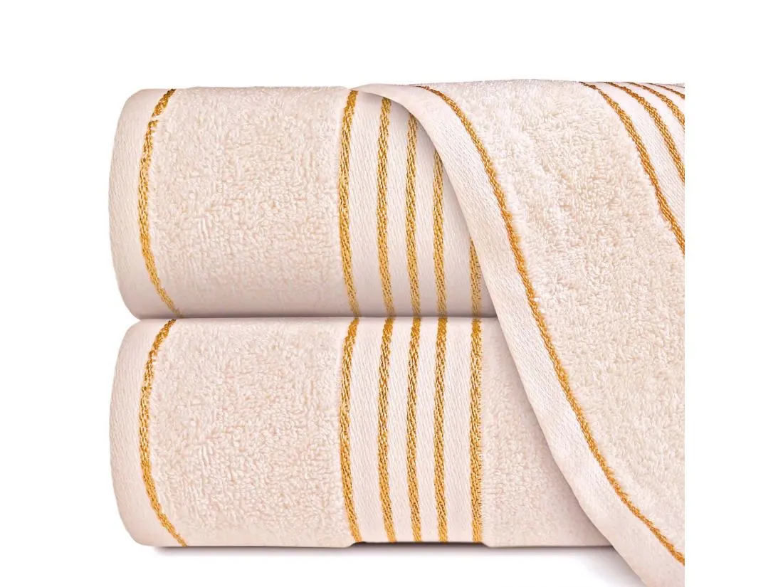 Ręcznik Kąpielowy, Gościnny 70x140 Bawełniany Tiwano Kremowy ze Złotą Bordiurą – Akcent Koloru i Luksusu