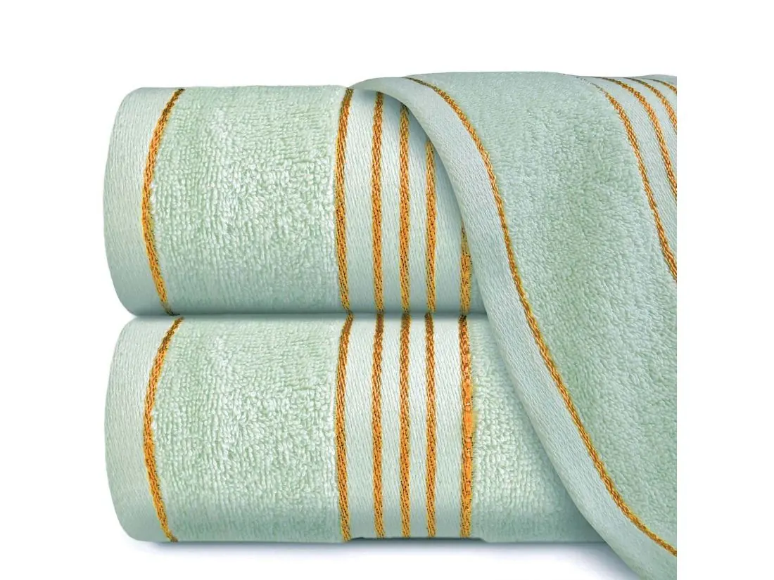 Ręcznik Kąpielowy, Gościnny 70x140 Bawełniany Tiwano Miętowy ze Złotą Bordiurą – Akcent Koloru i Luksusu