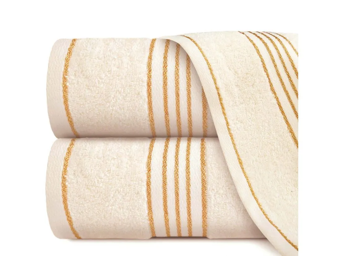 Ręcznik Kąpielowy, Gościnny 70x140 Bawełniany Tiwano Ecru ze Złotą Bordiurą – Akcent Koloru i Luksusu
