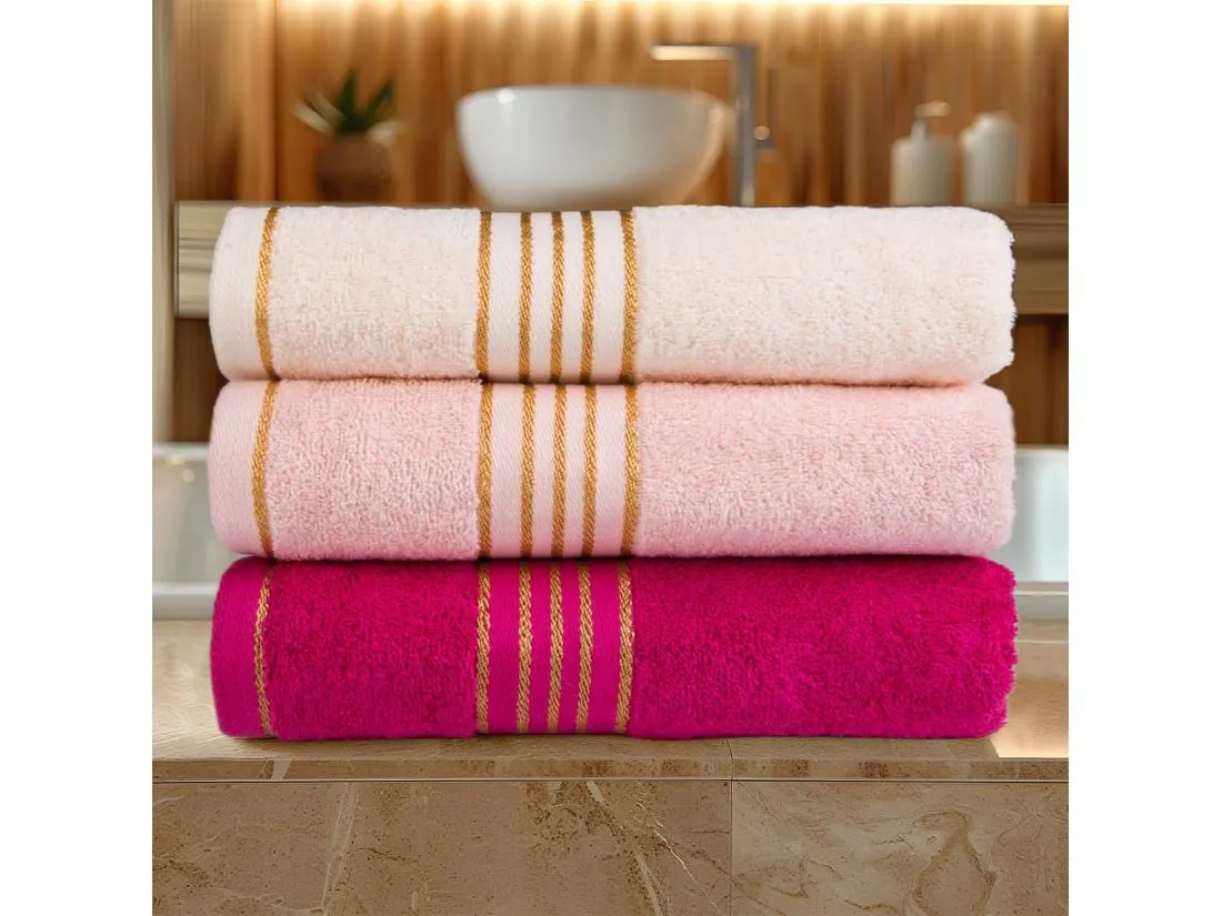 Chcesz dodać wnętrzu wyrazistego charakteru? Ręcznik bawełniany Tiwano w kolorze różowy w kąpielowym rozmiarze 70x140 cm to idealny sposób na ożywienie każdej łazienki. To nie tylko praktyczny **ręcznik do kąpieli**, ale też luksusowy dodatek gościnny. Jego intensywna barwa, połączona z elegancką, złotą bordiurą, tworzy stylowy akcent, który przyciąga wzrok.