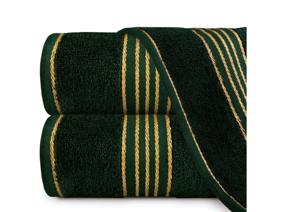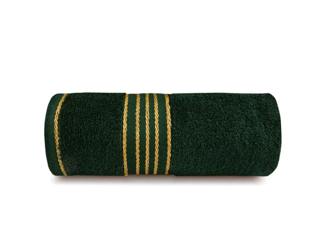 Ręcznik Kąpielowy, Gościnny 70x140 Bawełniany Tiwano Zieleń Butelkowa ze Złotą Bordiurą – Akcent Koloru i Luksusu