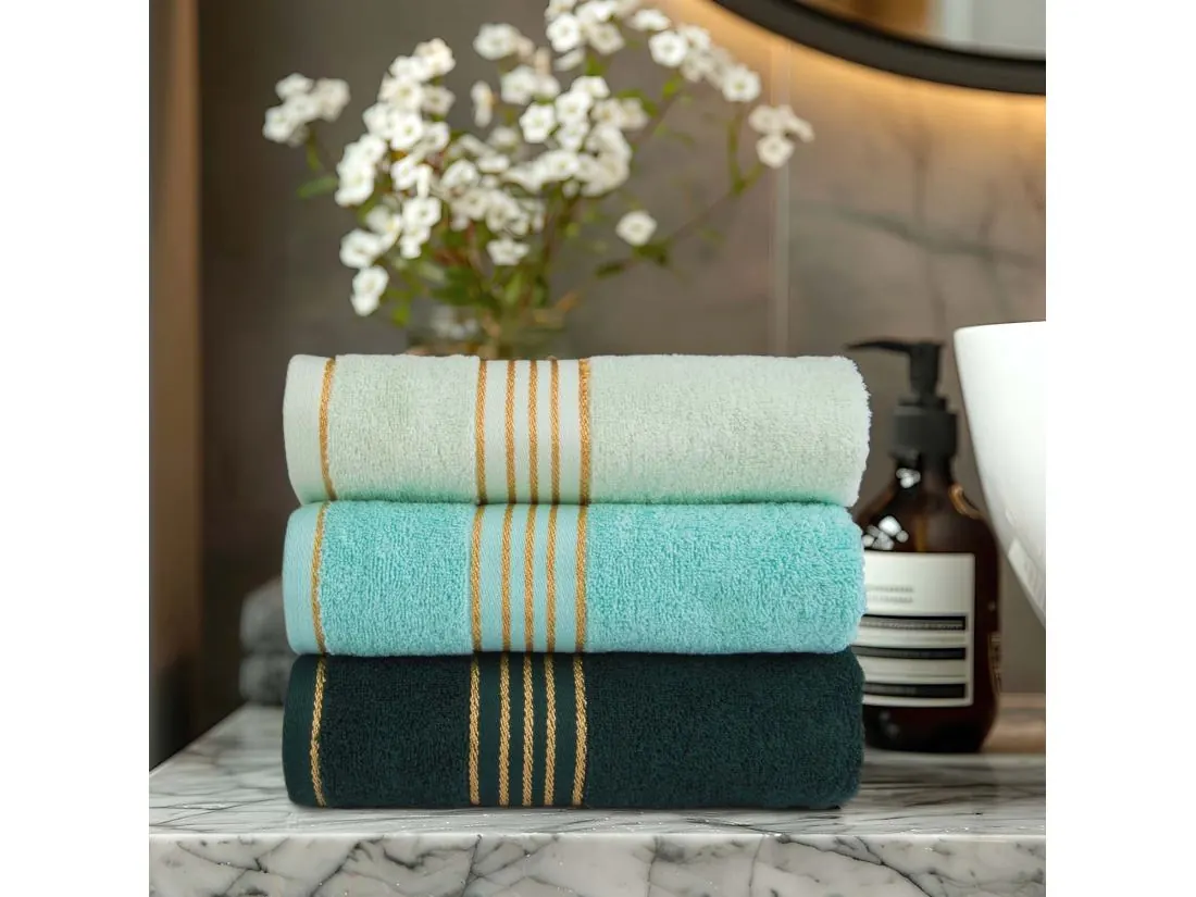 - Złota Bordiura: Luksusowy detal nadający ręcznikowi niepowtarzalnego stylu.
