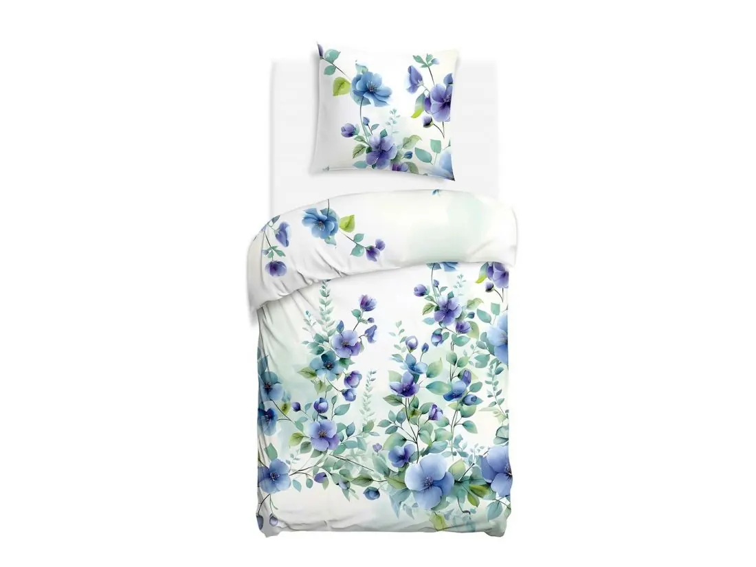 Pościel z satyny bawełnianej 140x200 Błękitne Kwiaty – Druk Cyfrowy
