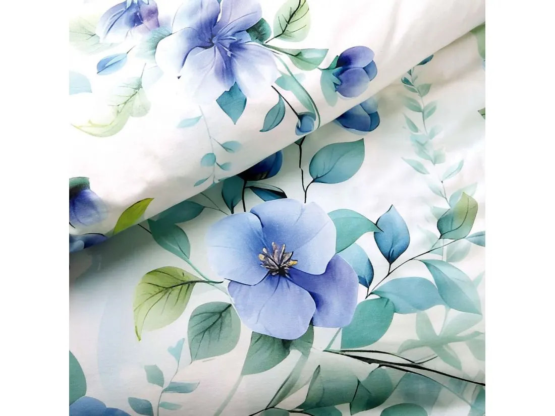 Pościel z satyny bawełnianej 160x200 Błękitne Kwiaty – Druk Cyfrowy