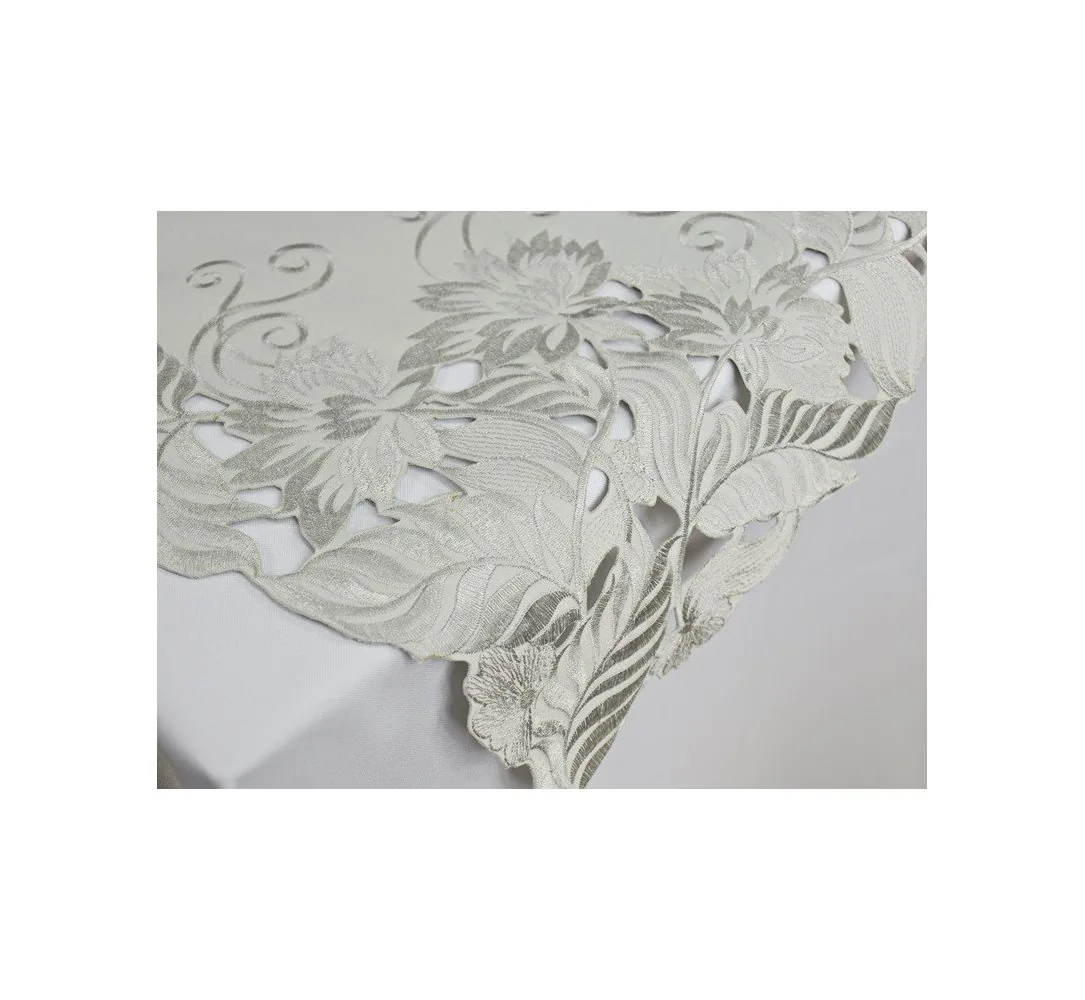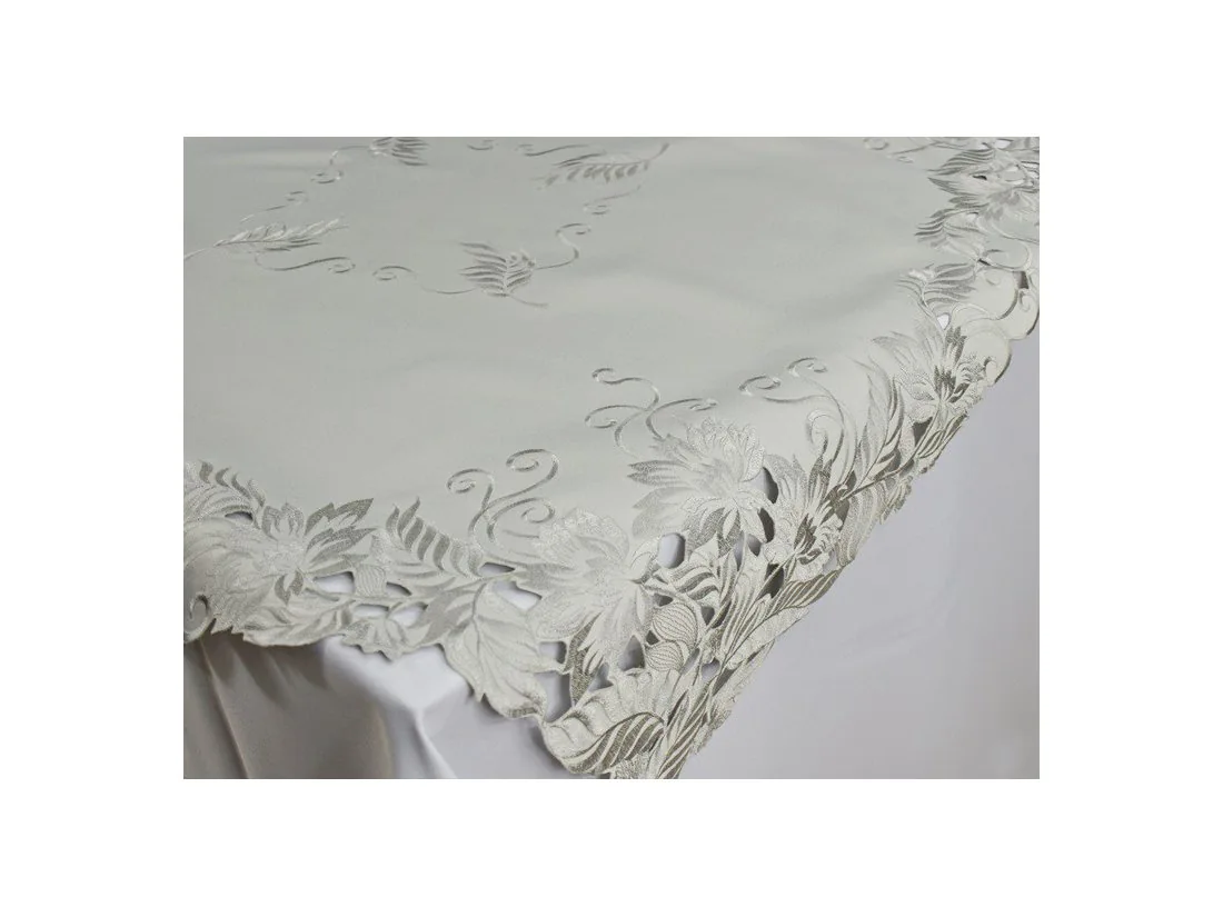 Serweta 85x85 cm jasny popiel z haftem liście Kwadratowy obrus haftowany