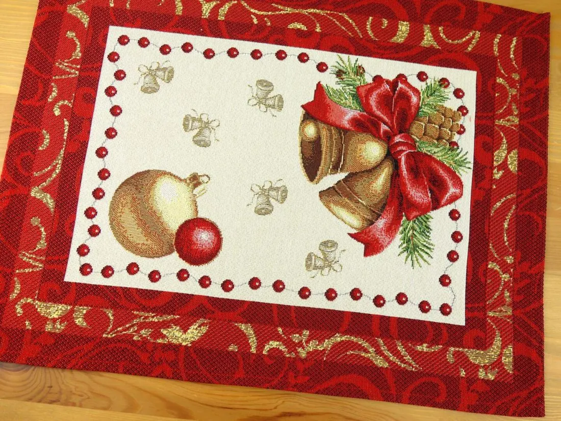Serwetka gobelinowa świąteczna 40x50 cm dzwoneczek w ramce czerwonej nr sw 206 SlodkieSny