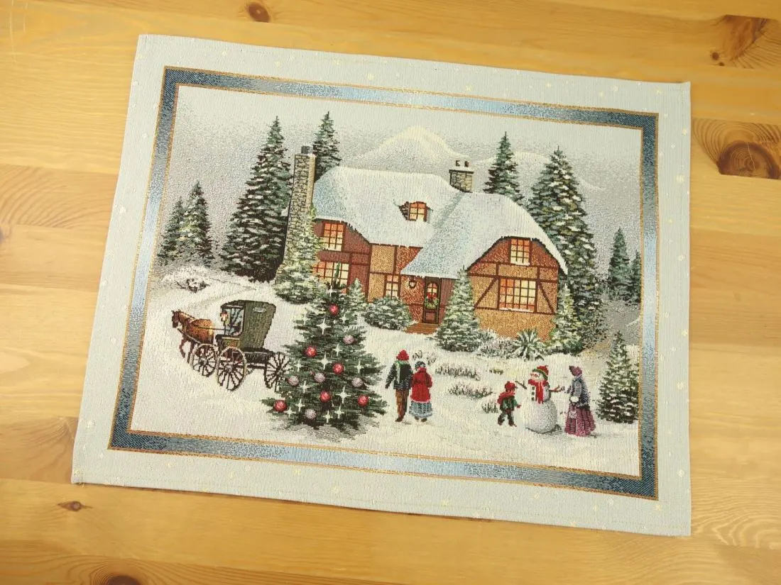 Serwetka Świąteczna Boże Narodzenie to wyjątkowy dodatek, który nada magicznego uroku każdemu wnętrzu w okresie świątecznym. Wykonana z hiszpańskiej tkaniny o składzie 25% bawełna, 70% poliester i 5% poliakryl, ta serwetka charakteryzuje się wysoką jakością i trwałością. Tkanina jest tkana żakardowo, co nadaje jej wyjątkową fakturę i wzornictwo. Niezwykłe wzory użyte na tym bieżniku nawiązują do tradycji gobelinów, które kiedyś ozdabiały ściany w domach. Teraz możesz cieszyć się tymi pięknymi motywami na swoim stole lub komodzie. Nakładka Gobelinowa Świąteczny Boże Narodzenie jest idealny do umieszczenia w salonie lub kuchni, gdzie jego obecność odmieni całe wnętrze i stworzy magiczną atmosferę. Tkanina jest gruba , co sprawia, że jest praktyczna i łatwa w utrzymaniu. Różnorodność wzorów na bieżnikach gobelinowych zaspokoi gust każdego, kto pragnie wprowadzić do swojego domu niepowtarzalny, magiczny, sielski klimat. To doskonałe rozwiązanie, aby odmienić wnętrze na czas świąt, dodając mu wyjątkowego charakteru.