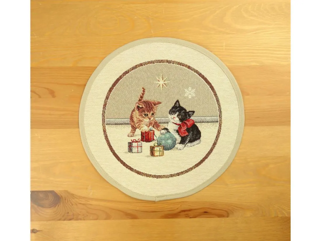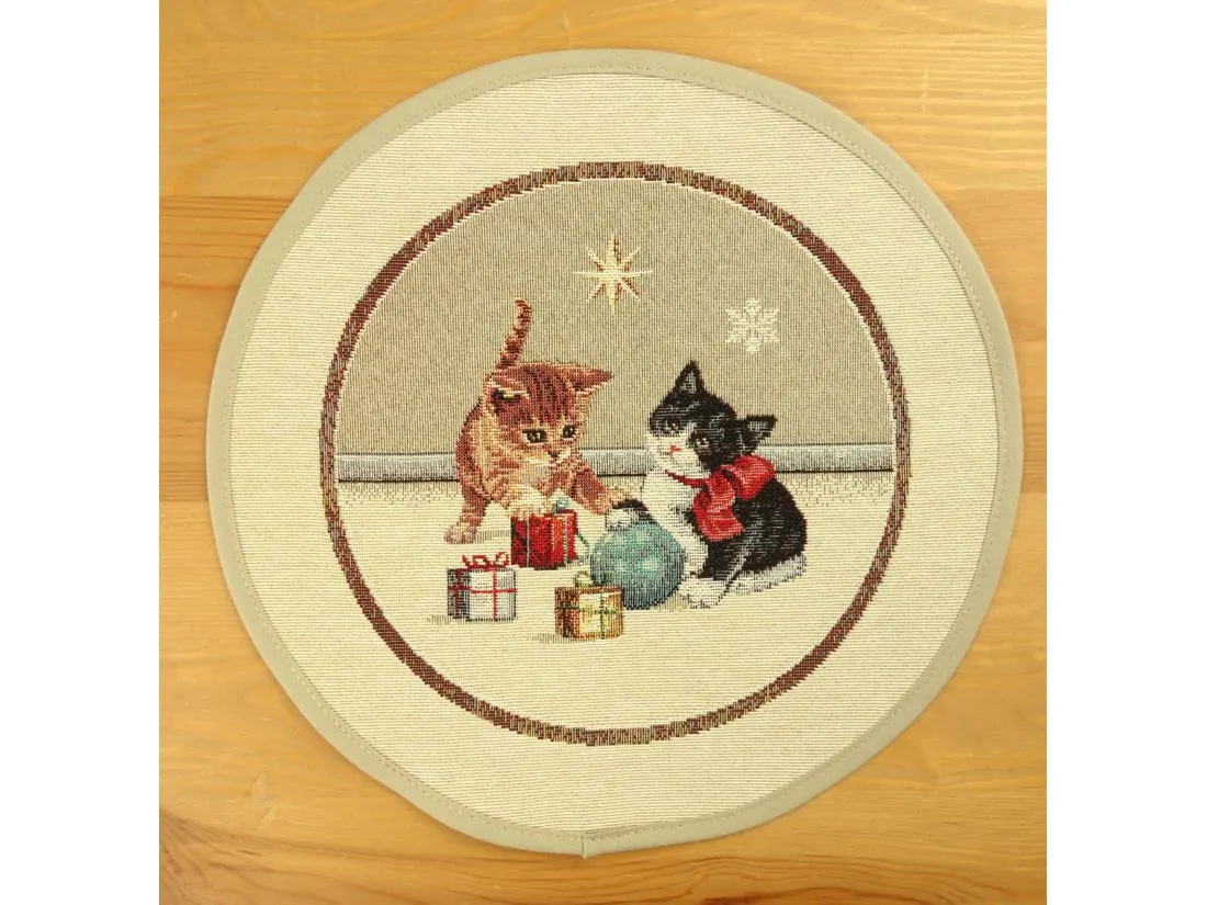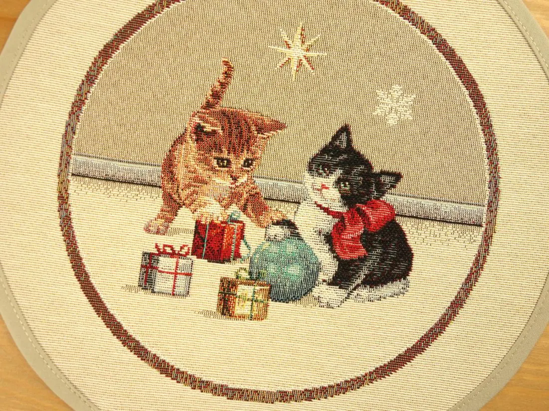 Serwetka gobelinowa świąteczna śr. 27 cm kotki z prezentami wz. 275 SlodkieSny okrągły