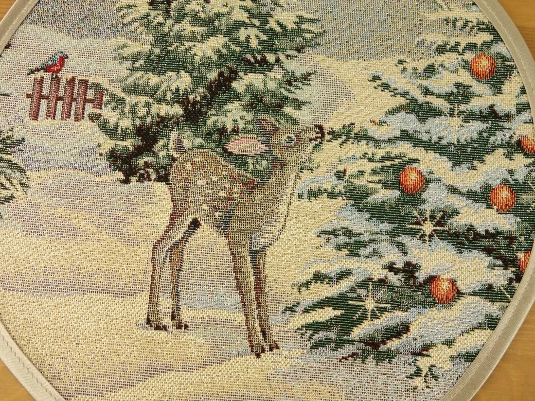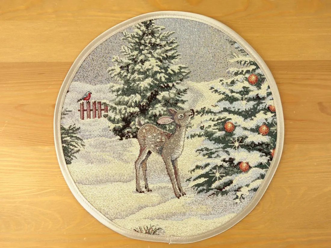 Serwetka gobelinowa świąteczna śr. 27 cm sarenki, zajączki zimą wz 299 SlodkieSny okrągła