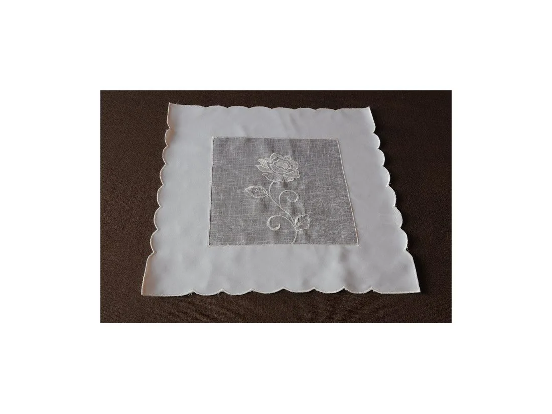 Serwetka haftowana 40x40 ecru – elegancka serwetka dekoracyjna na stół z motywem róży i woalem