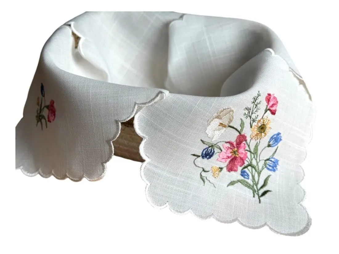 Serwetka haftowana do koszyczka na pieczywo 44x44 cm kolorowe kwiatki wz 095 1 szt wielkanocna