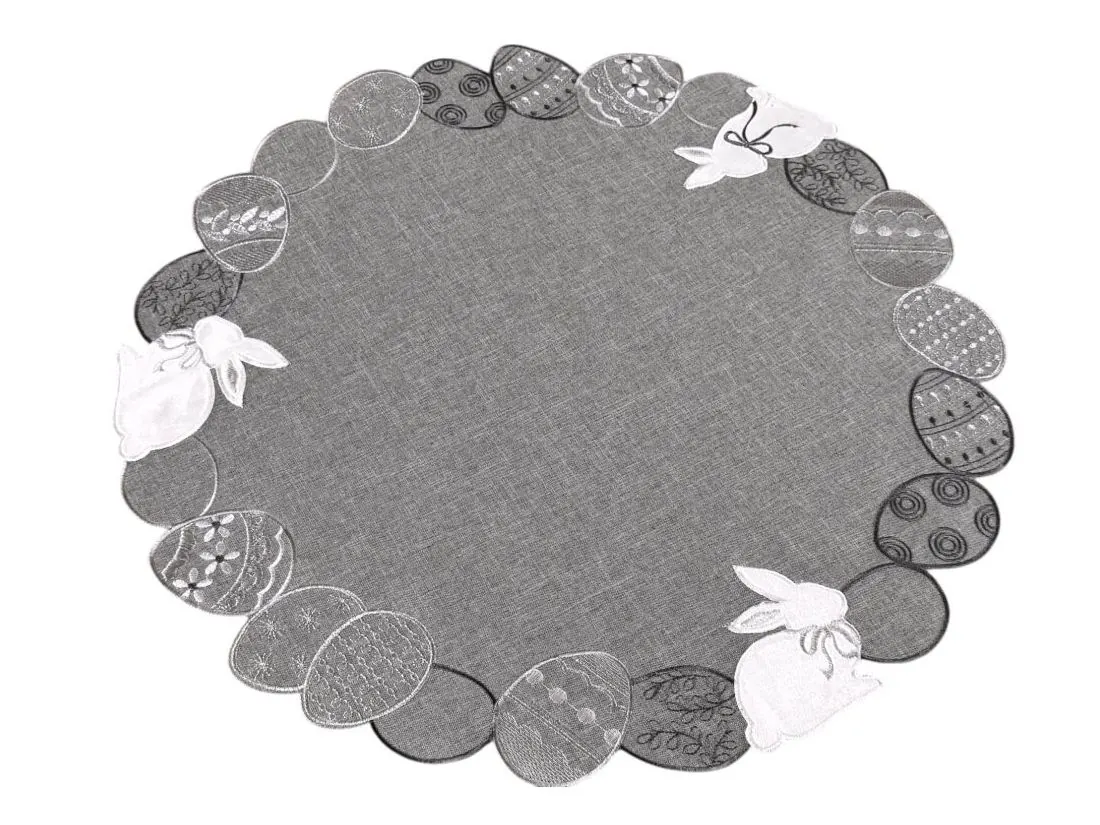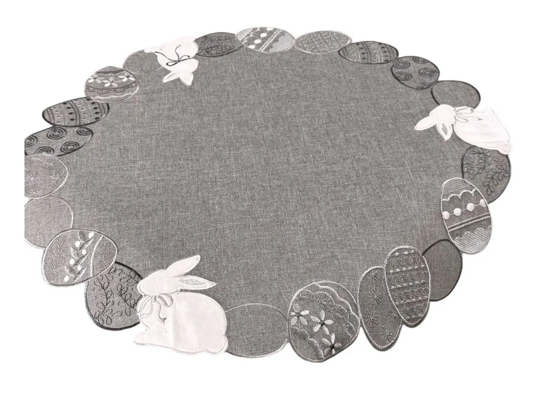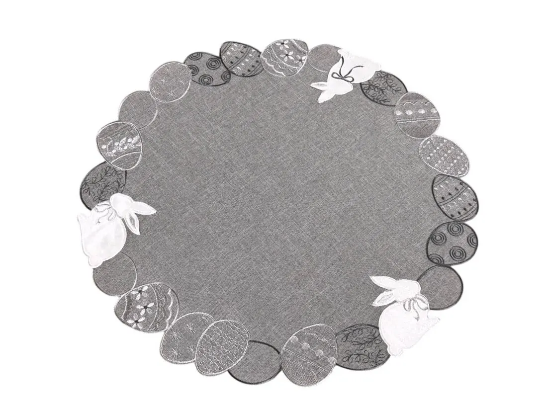 Serwetka świąteczna śr.60 cm zajączki, pisanki na popielatym tle int 4728 wielkanoc