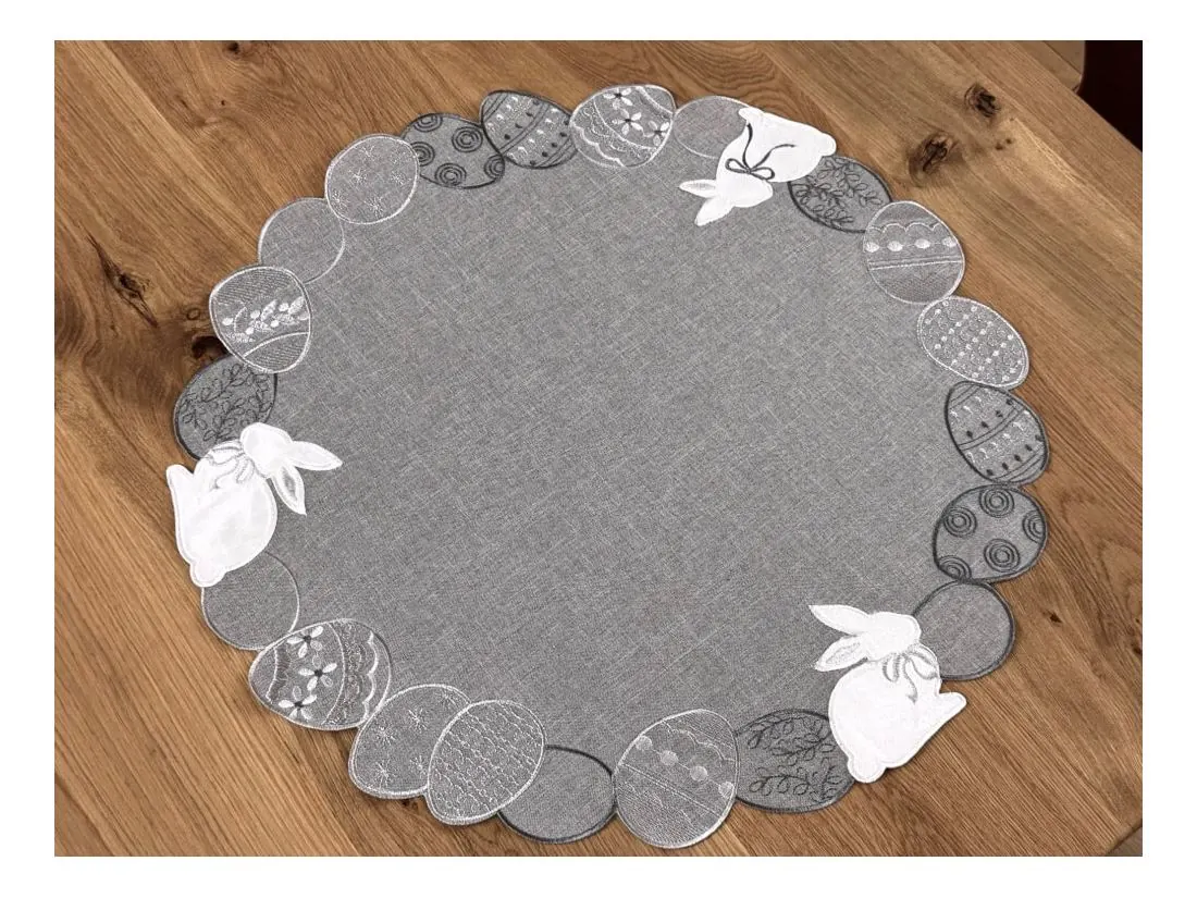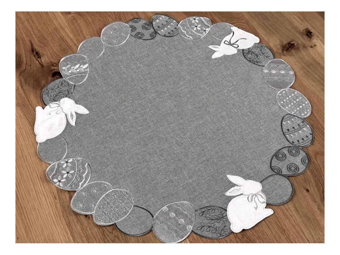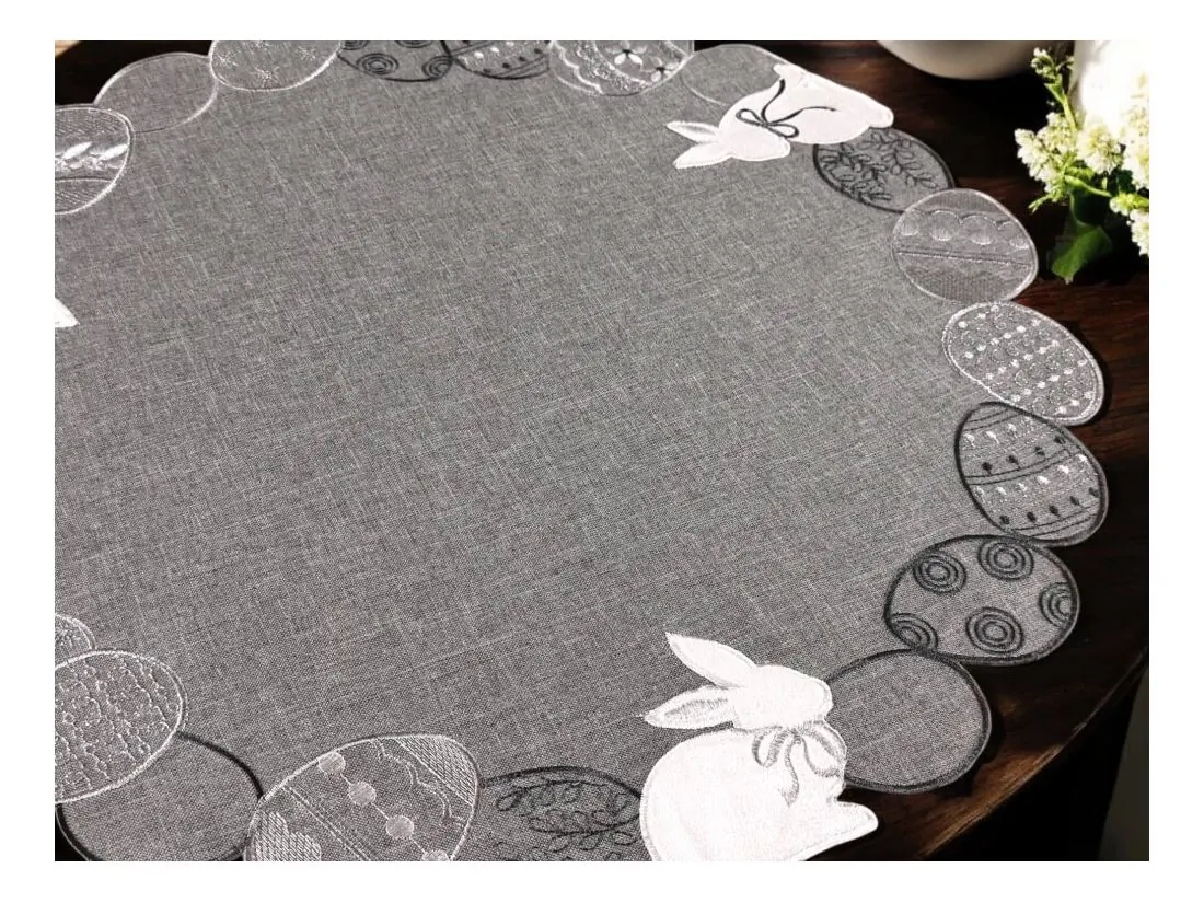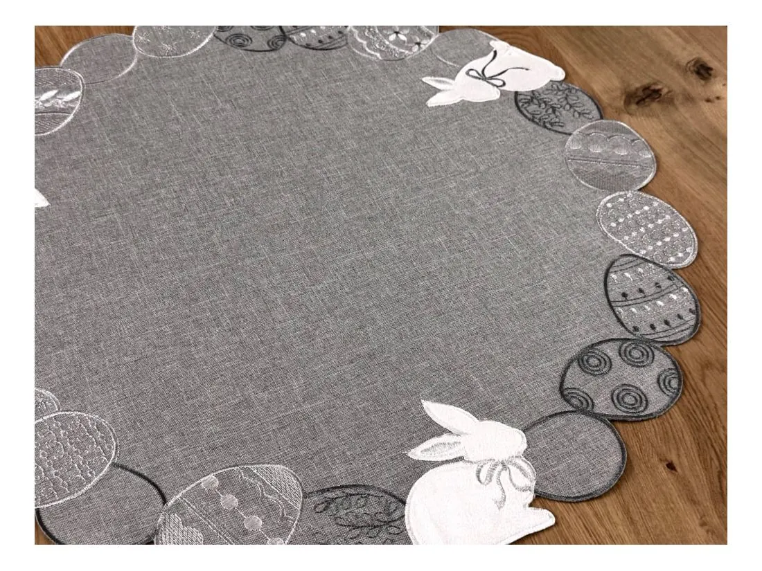 Serwetka świąteczna śr.60 cm zajączki, pisanki na popielatym tle int 4728 wielkanoc