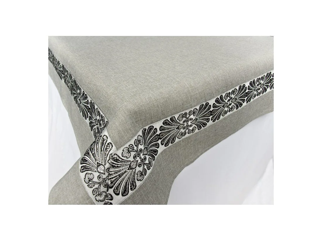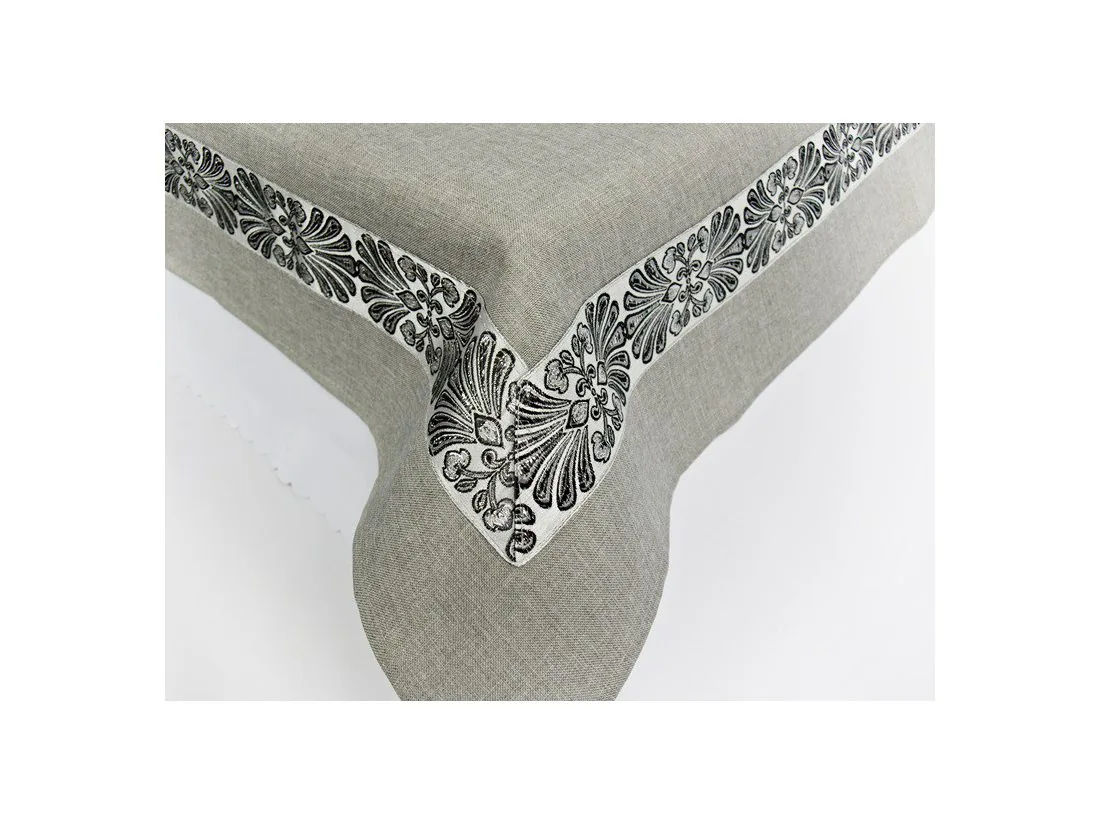 Obrus haftowany 140x220 szary / popielaty – elegancki obrus na stół do salonu i jadalni