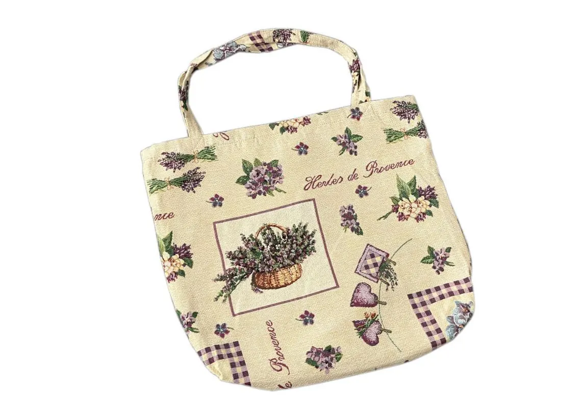 Torba gobelin duża z lawendy na jasnym tle na zakupy i nie tylko. Torba została wykonana z wysokiej jakości grubej, mocnej tkaniny gobelinowej. Torba gobelinowa idealnie sprawdzi się podczas zakupów, na spacerze czy na dokumenty.