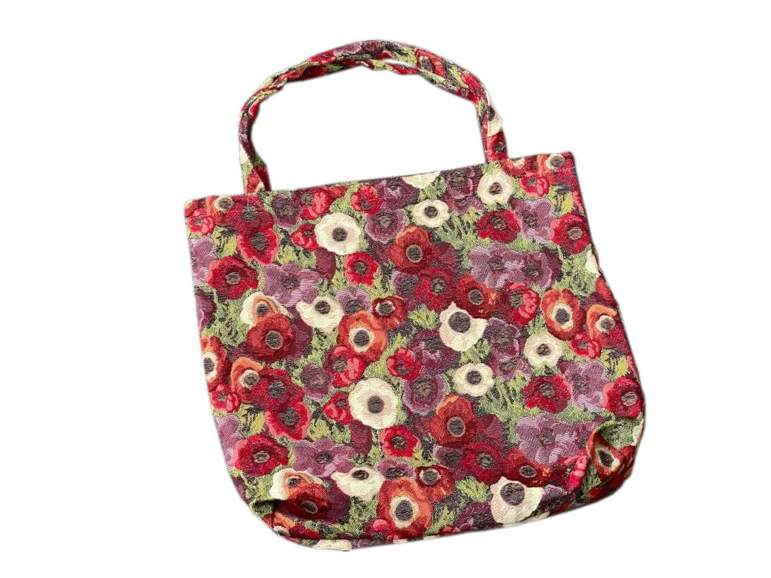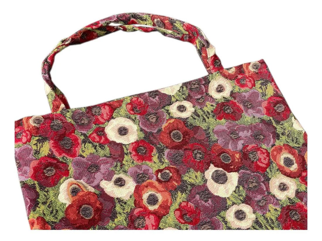 Torba gobelin duża z kwiatami maków na jasnym tle na zakupy i nie tylko. Torba została wykonana z wysokiej jakości grubej, mocnej tkaniny gobelinowej. Torba gobelinowa idealnie sprawdzi się podczas zakupów, na spacerze czy na dokumenty.