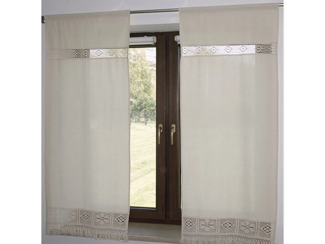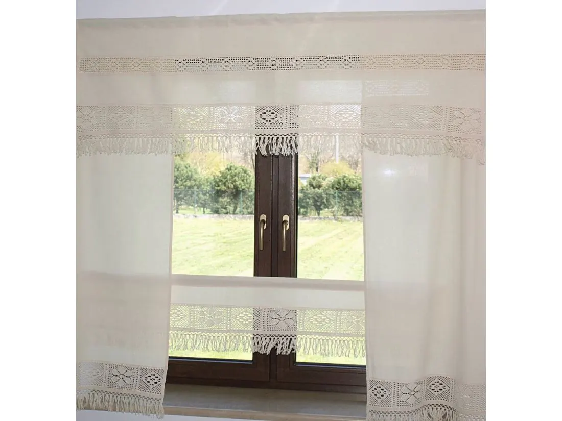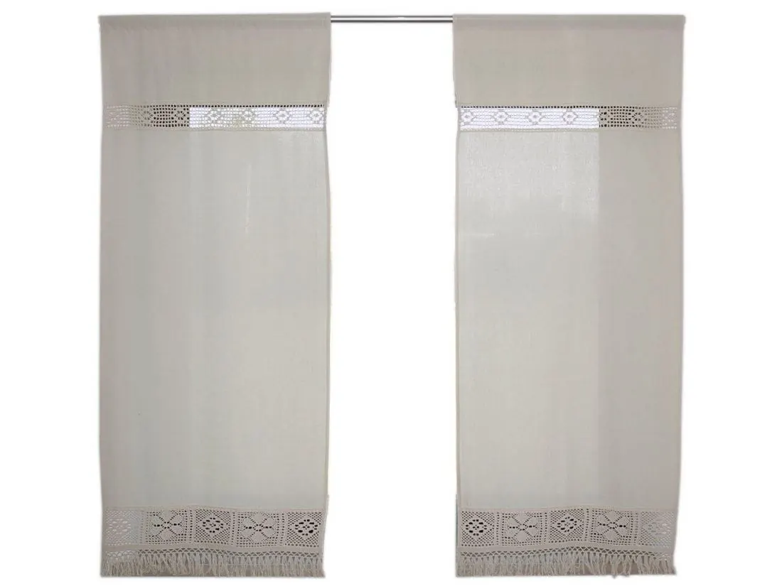 Zasłonka Beżowa 150x60 cm z Koronką i Frędzlami – Firanka Arkadia