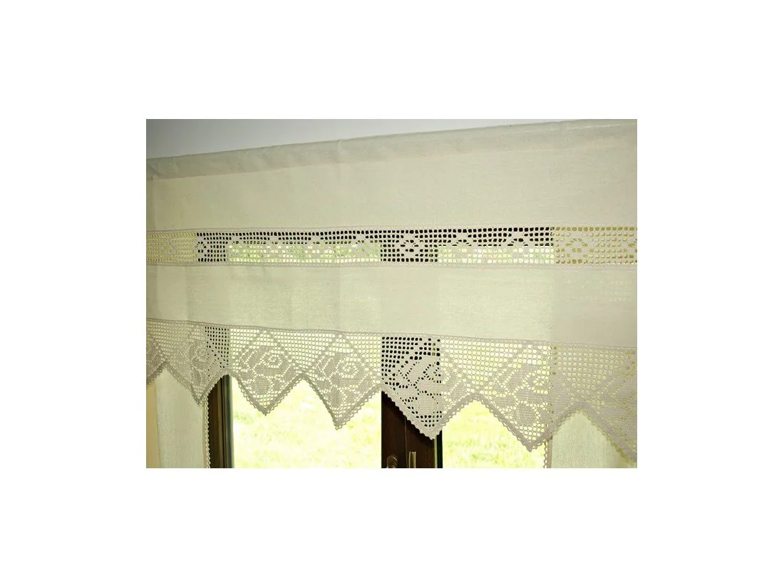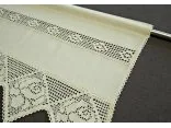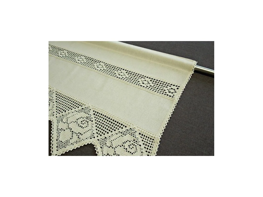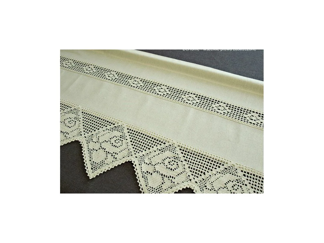 Dekoracyjna zazdrostka w rozmiarze 50 x 200 cm /wys/dł/ w kolorze beżowym wykończona ozdobną koronką nada niepowtarzalny klimat każdej jadalni, kuchni.