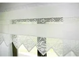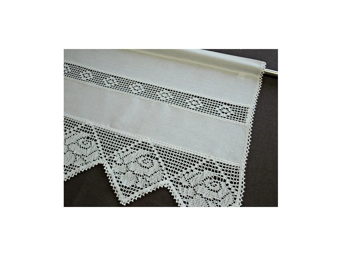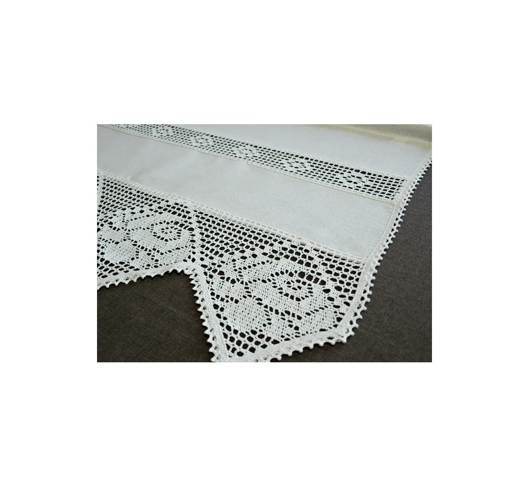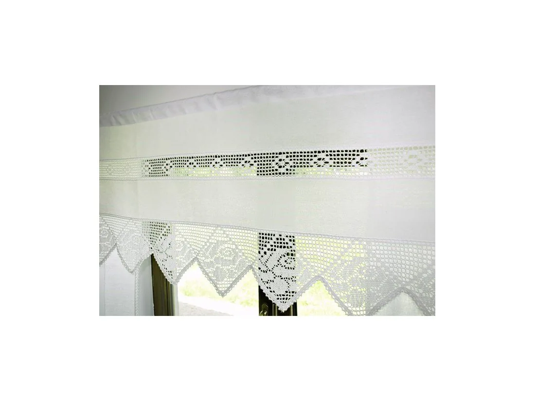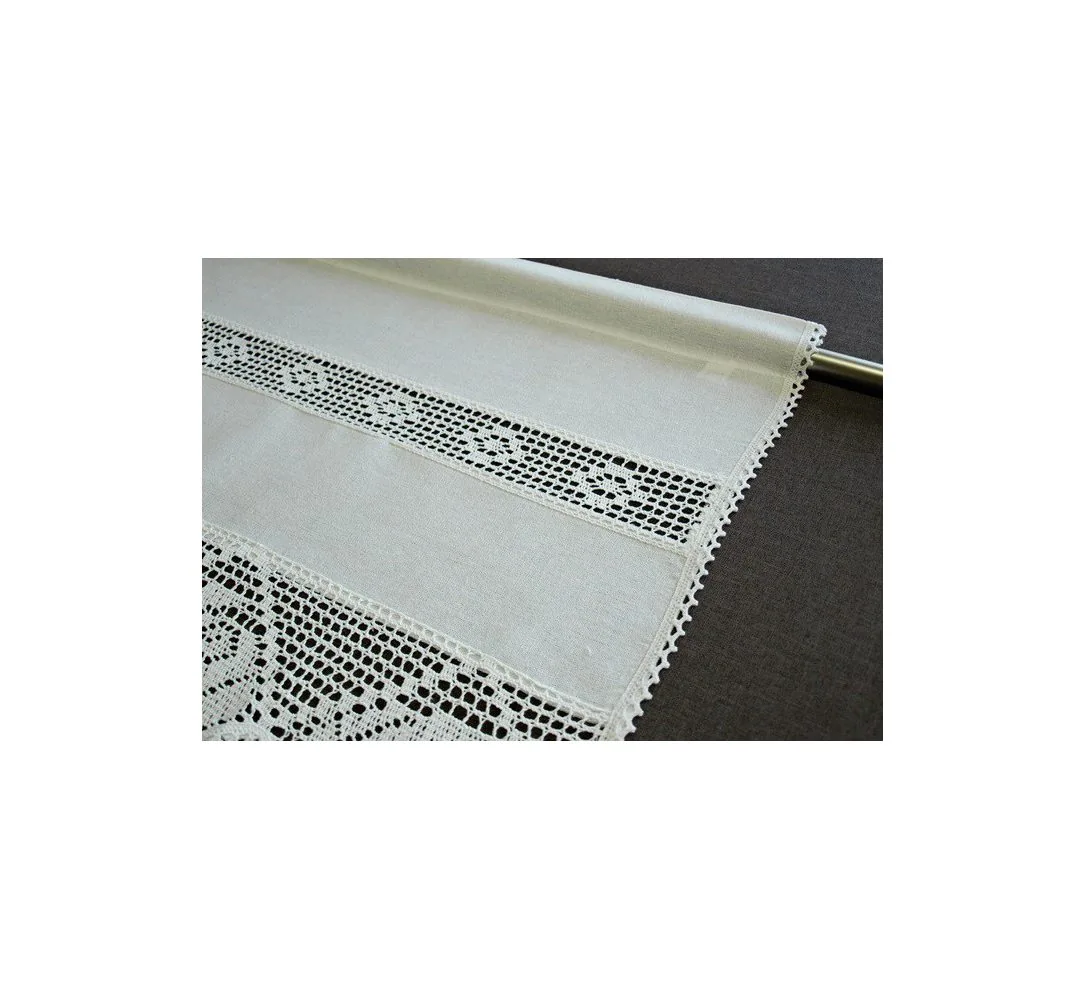 Dekoracyjna zazdrostka w rozmiarze 50 x 200 cm /wys/dł/ w kolorze białym wykończona ozdobną koronką nada niepowtarzalny klimat każdej jadalni, kuchni.