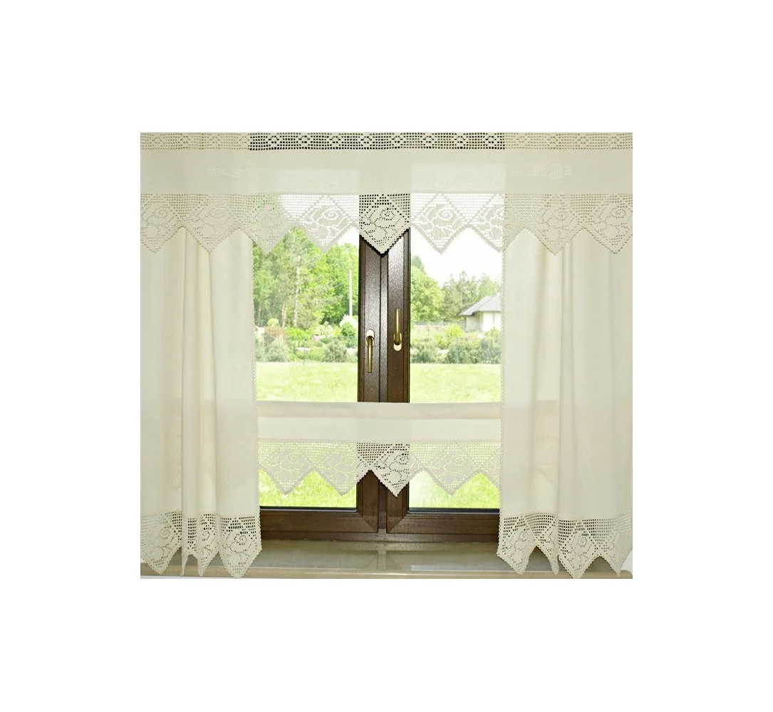 Kolekcja firan Idylla to wyjątkowe połączenie tkaniny i dekoracyjnej koronki, oraz kompletne rozwiązanie do dekoracji okna w kolorze beżowym lub białym w wielu rozwiązaniach i rozmiarach.