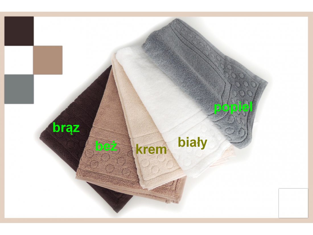 Dywanik występuje : w kolorach beżowym, białym, brązowym, kremowym, miętowym, popielatym, różanym, turkusowym, złocistym