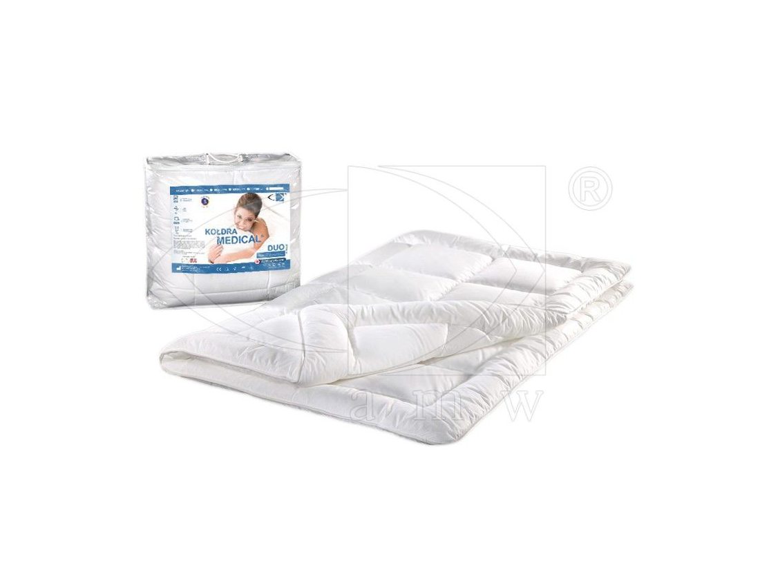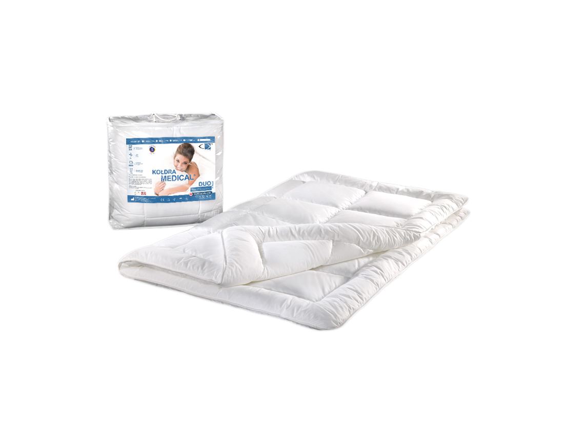Kołdra zimowa Medical®+ Duo 220x200 cm, antyalergiczna, jest wytwarzana przez polskiego producenta AMW jako wyrób medyczny. Ta innowacyjna kołdra zapewnia nie tylko komfort i ciepło, ale także dodatkową warstwę termoizolacyjną dzięki unikalnemu rozwiązaniu dwóch połączonych na stałe kołder.