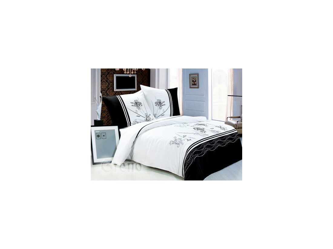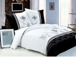 Innowacyjny przykuwający wzór pościeli satynowej z pięknym haftem oraz modne połączenie kolorów białego i czarnego to propozycja dla osób ceniących w swojej sypialni zawsze modną klasykę.